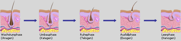 Das Wachstum der Haare wird in drei Phasen eingeteilt.